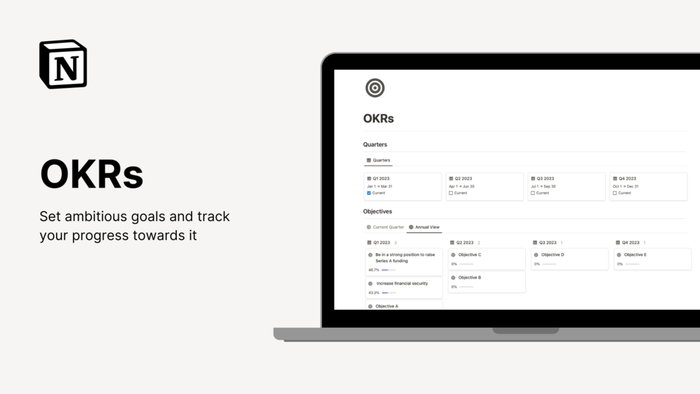 You'll get: The Notion OKRs template pre-filled sample data + a step-by-step guide on how to input your own data and get started!